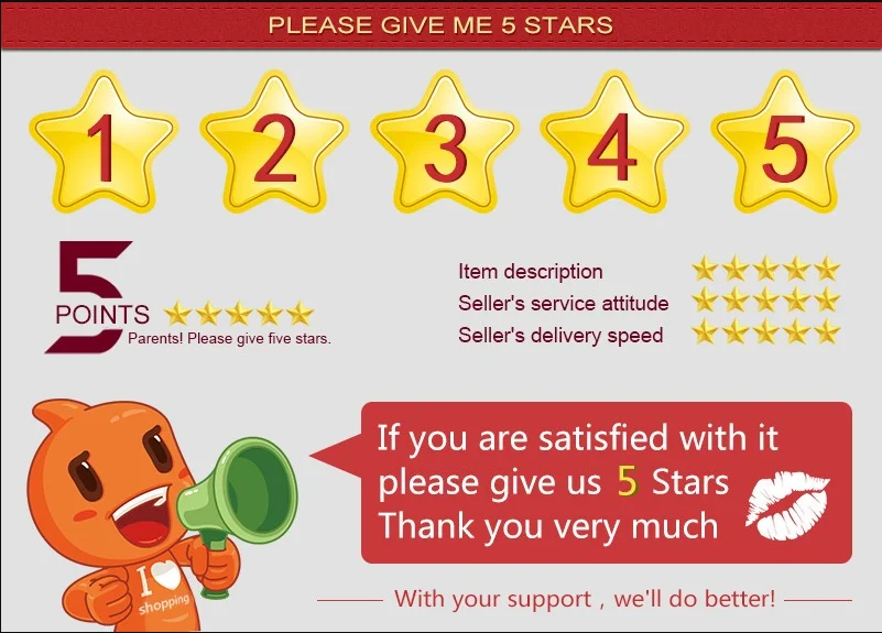 Since your feedback is very important to our business' s development,we sincerely invite you to leave us a positive feedback if you are satisfied with our product and service.