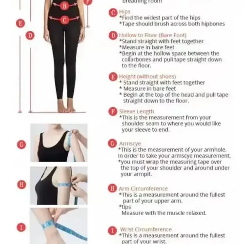 10.Height of heel (The shoes you’re going to wear on the day you wear this dress) =___ cm/inches.